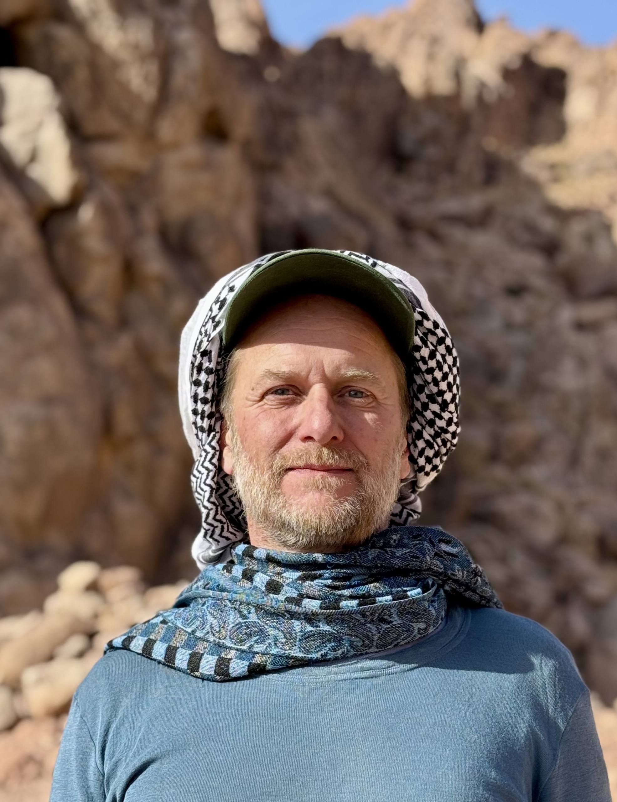 Holger bei seiner Rückkehr von der Männer-Visionssuche – im Allgäuer Alltag triffst Du ihn eher ohne Beduinen-Tuch auf dem Kopf.