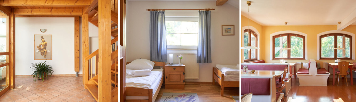 - schaltest Du dank der abgeschiedenen Alleinlage des Seminarhauses mit Bergblick richtig ab und genießt Rückzug, Ungestörtheit, Fokus auf Deine inneren Prozesse.
